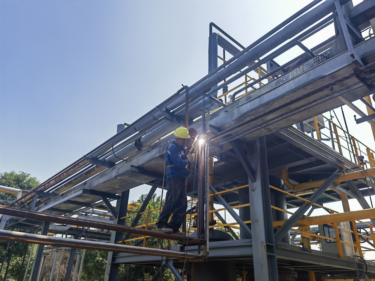 在现场,配管、焊接、安装法兰、调试仪表……施工人员正有条不紊地忙碌着,呈现出大干快上、奋勇争先的工作场景。虽然这几天有些燥热,但是施工人员的热情更加火热,趁着晴好天气,干劲不减,节奏不变,在各自岗位上作业,焊接的焊接,配管的配管,刷漆的刷漆,各类施工工具机声隆隆。车间主任往来巡视,及时调度,处理施工时遇到的各种困难;动力车间负责安装调试各类电气仪表,生产部、安全环保部也都安排人手对施工现场的安全操作进行监管,确认各种安全措施是否落实到位,在保障安全和施工质量的前提下,最大化提高队伍工作效率,确保二期改造项目建设顺利如期推进。
