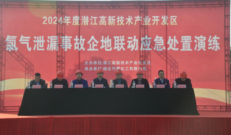 近日,潜江高新技术产业开发区与可赛公司开展企地联动氯气泄漏应急预案处置演练。本次演练由潜江高新技术产业开发区主任郑琼任总指挥,演练队伍包括潜江市生态环境局、潜江市消防大队、泽口水陆派出所、泽口卫生院、可赛公司应急人员等。