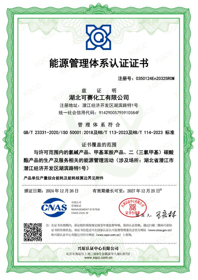 近日,可赛公司首次成功通过能源管理体系认证审核,获得了带有CNAS标志的认证证书。这一里程碑式的成果标志着可赛公司在能源管理领域达到了国际标准,为公司的绿色发展之路奠定了坚实基础。