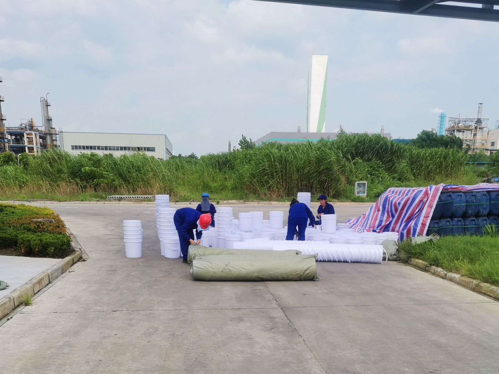 有库房存在结块BTC产品挤占库存的情况,需要粉碎再包装才能销售,粉碎过程的BTC粉尘具有毒害性,车间人员需全面做好安全防护措施。员工穿戴防化服、防毒面具、防护手套、雨靴,36℃的高温,秉承着共产党员攻难克艰的信念,车间主任黄斌与副主任章晋刚身先士卒进行BTC粉碎,起到了先锋模范带头作用。车间员工同力协契,迎难而上,战高温、斗酷暑,现已累积粉碎包装18吨。